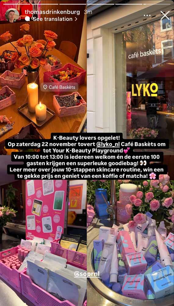 Day two was all about the LYKO community. The first 100 visitors received a goodiebag and a drink, while everyone got the chance to explore the full K-beauty universe curated by LYKO. From discovering new skincare favourites to sipping on iced latte’s, Café Baskèts truly felt like Korean skincare heaven. A playground in every sense of the word, and an event where K-beauty truly came to life.
